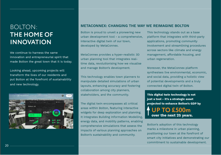 MetaConnex has proven its ability to drive urban regeneration, save time and money, and support ambitious development visions, positioning Bolton for a vibrant and prosperous future.